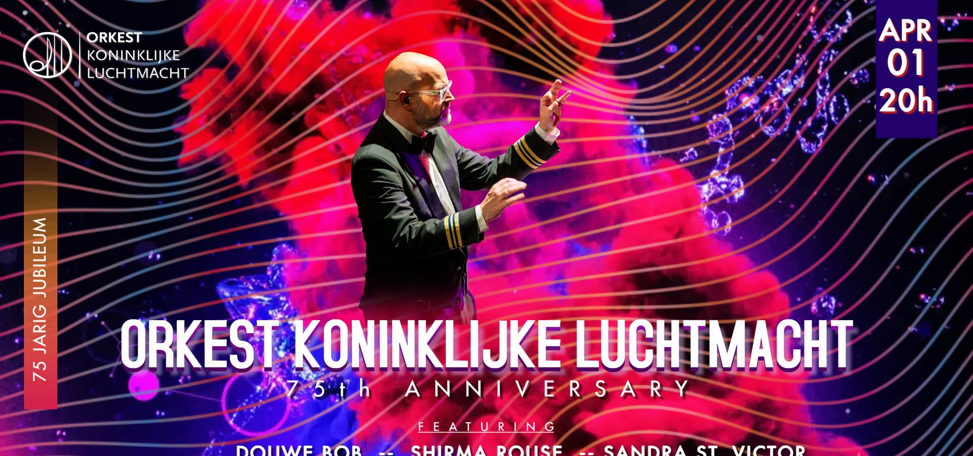 Het Orkest Koninklijke Luchtmacht viert zijn 75-jarig jubileum met een groots en feestelijk concert dat je niet wilt missen! Tijdens deze bijzondere avond nemen we je mee door de roemruchte geschiedenis van het orkest – van indrukwekkende hoogtepunten tot iconische muzikale momenten.