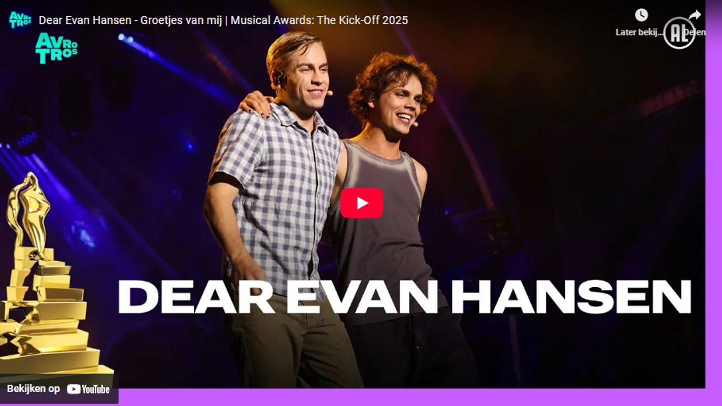Het bekroonde creatieve team van de Nederlandse productie van Come From Away (9 Musical Award nominaties) maakt een gloednieuwe bewerking van dit internationale succes. Hét grote nieuwe musicaltalent Ward van Klinken speelt titelrol Evan Hansen. Samen met een sterrencast met onder andere Marlijn Weerdenburg, Cystine Carreon, Nyncke Beekhuyzen, Lisa Schol, Pepijn van den Berg, Alex van Bergen, Dave Rijnders en Naima Bayo brengt hij deze hoopvolle musical naar de Nederlandse theaters.