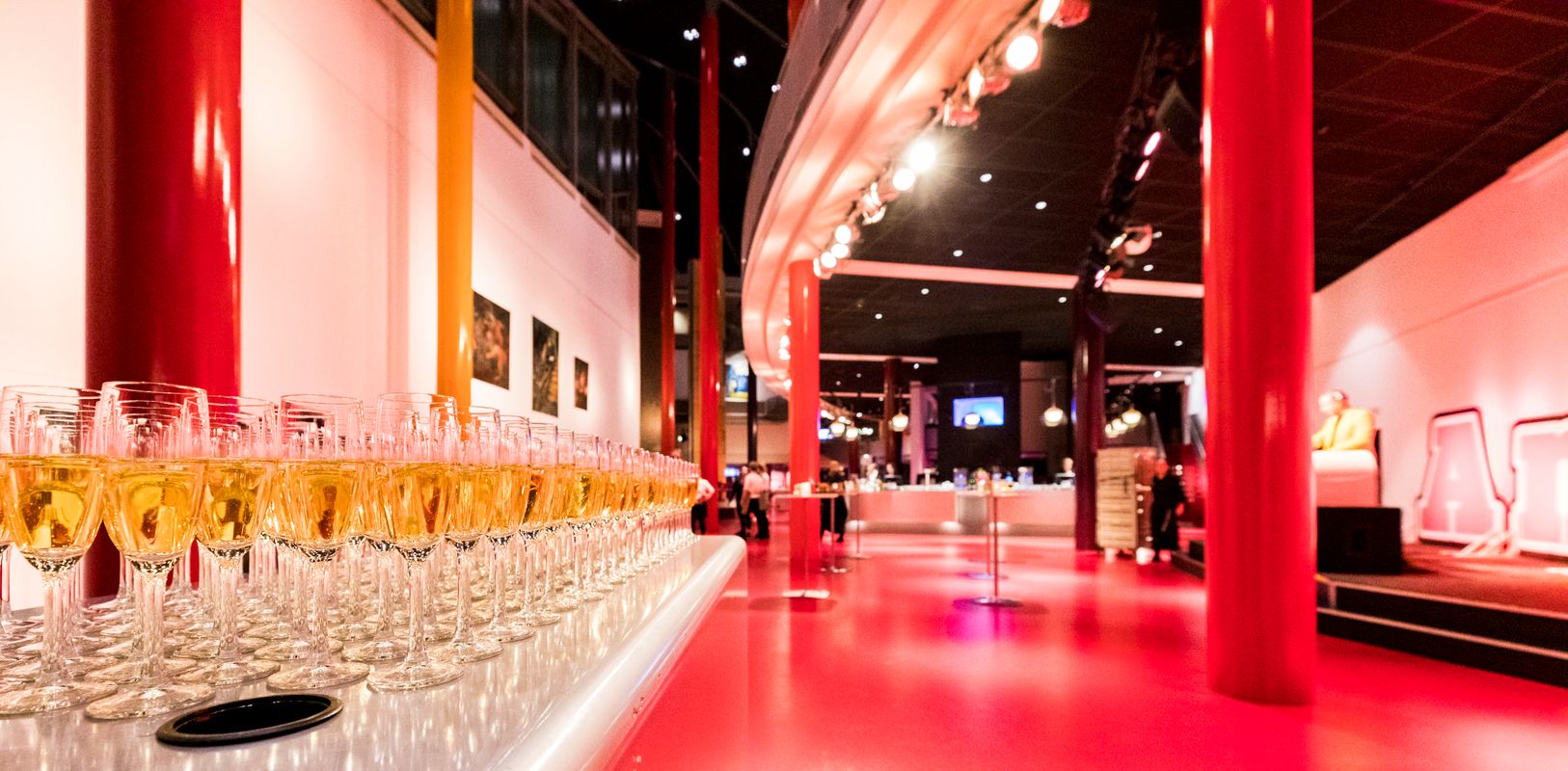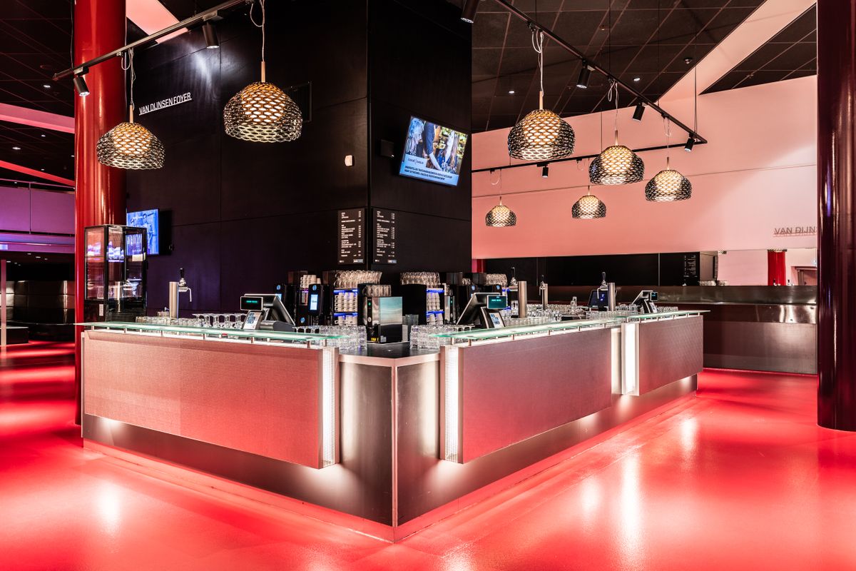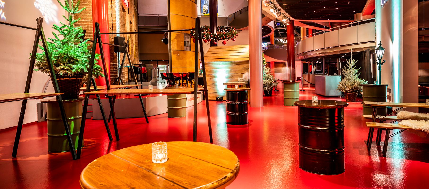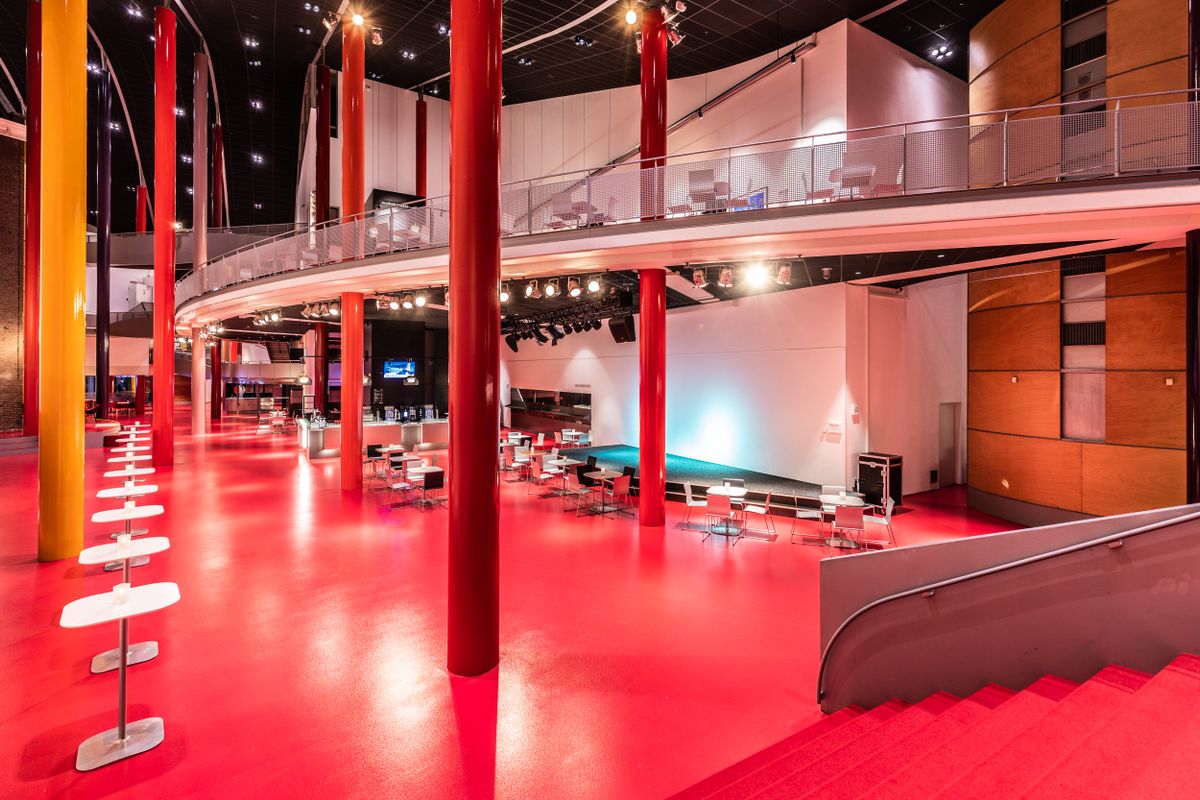 De Theaterstraat ligt bij de ingang van de grote zaal en is een kleurrijke locatie met een ruimtelijk gevoel.