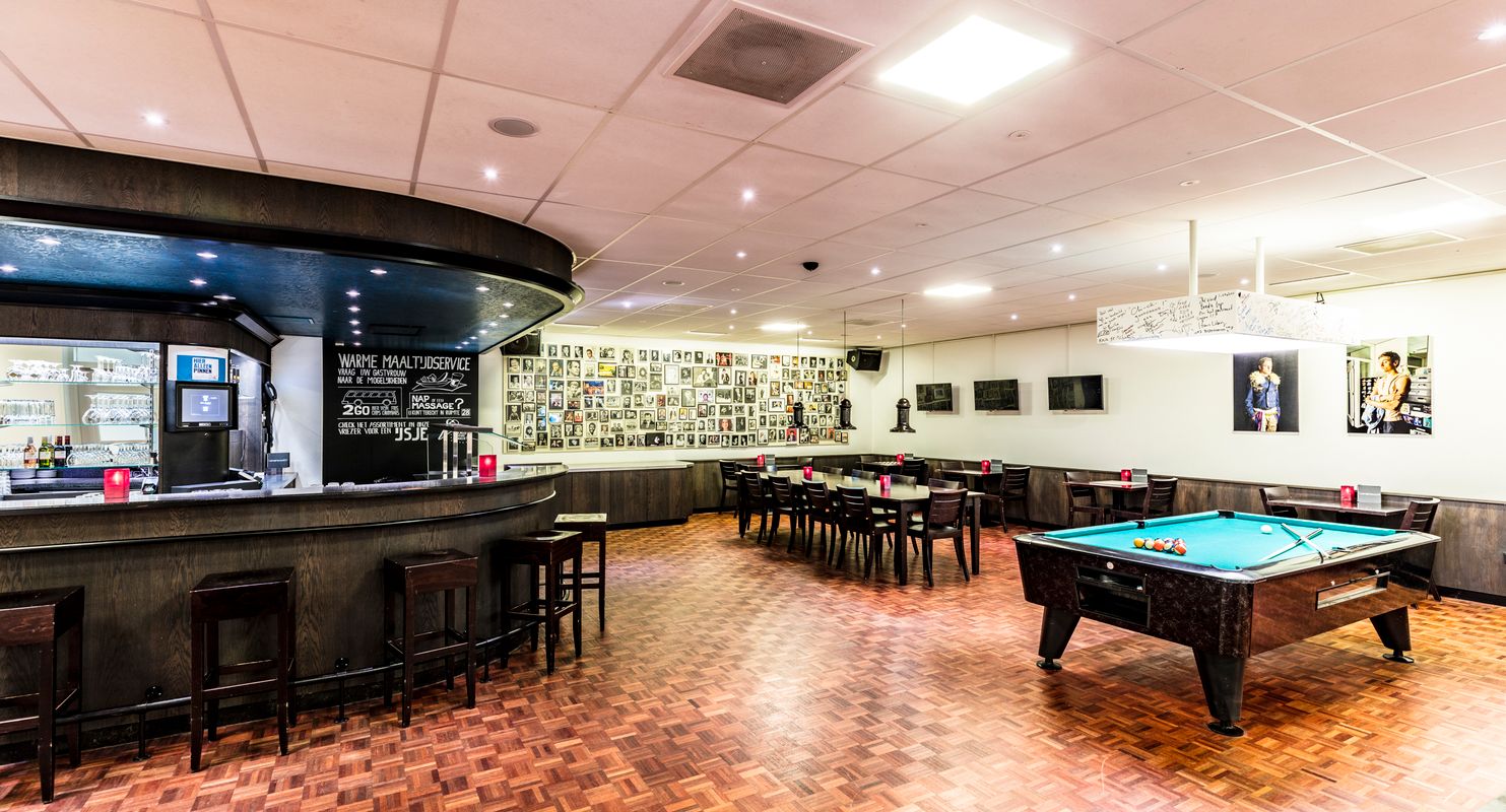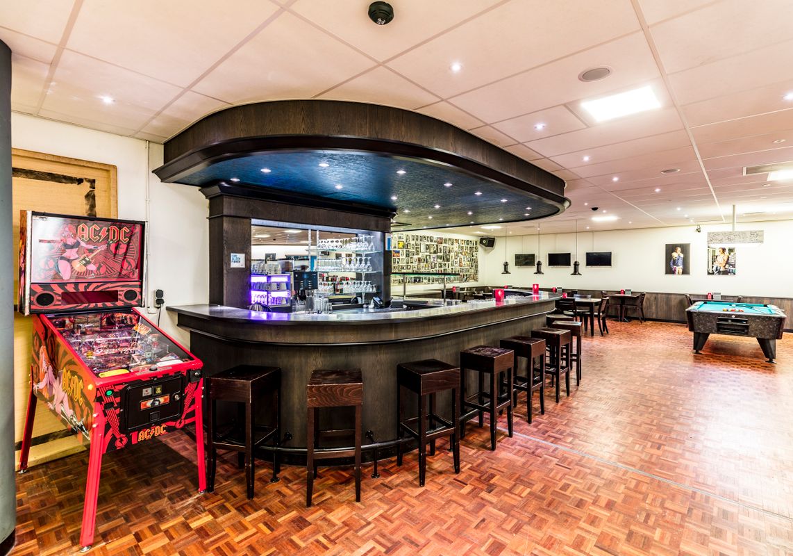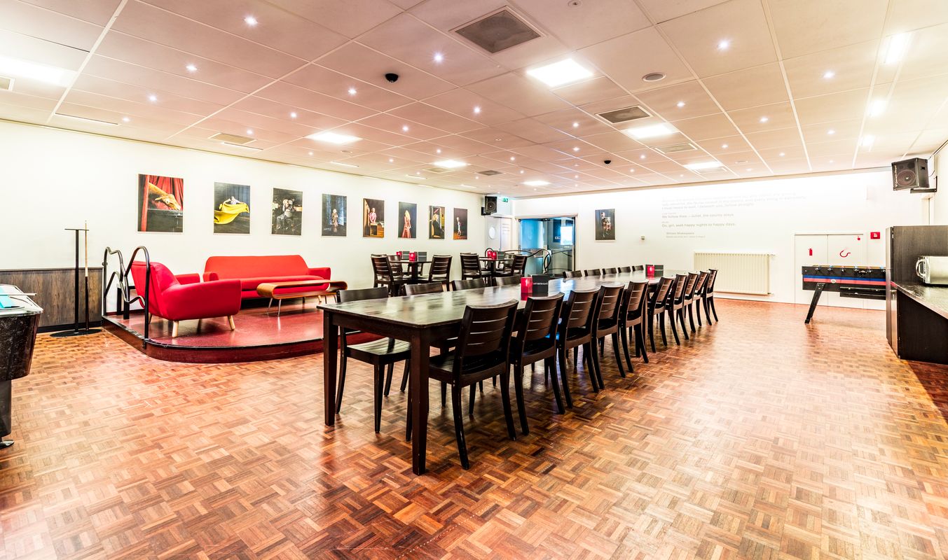 De artiestenfoyer ligt in de kelder van het Chassé Theater en heeft een informele bruine kroeg sfeer.