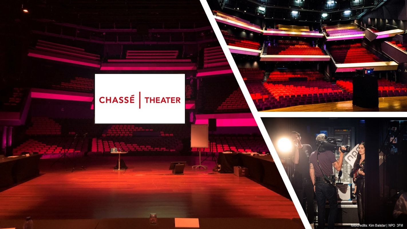 Organiseer je een online seminar zonder fysiek publiek dan kom je terecht in de wereld van de webinars. Via programma’s als Zoom, Teams, Youtube of via een beveiligde stream zendt je live een programma uit naar jouw online publiek. Chassé Theater heeft diverse ruimtes die uitermate geschikt zijn voor het uitzenden van webinars. Neem hieronder een kijkje. Daarnaast kunnen we je helemaal ontzorgen op technisch gebied zodat jij op de inhoud kan focussen.