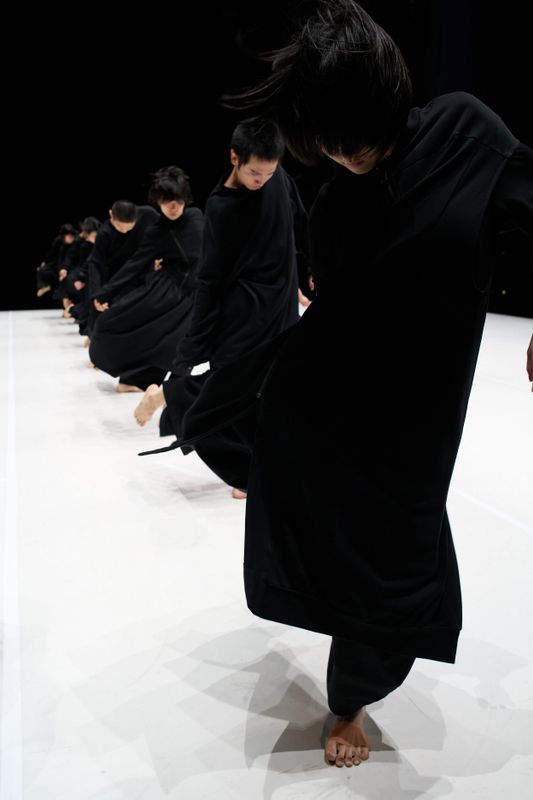 In 16, sixteen dancers move in a fluid line like a dragon. Inspired by the traditional Chinese Loong (dragon) dance, the dancers form one continuous body, transferring energy seamlessly from one point to another. Through masterful use of space, they collectively embody a dragon—spines appearing elastic as arms and legs twist, swirl, and ripple in a dance fully attuned to gravity. As 2024 marked the Year of the Dragon in China, 16 explores the scope of Eastern physicality and aims to usher in good fortune for the new year.