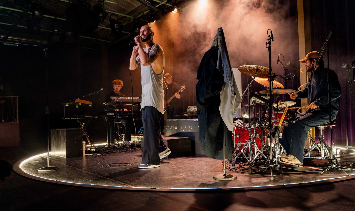 In de zaal ontvouwt zich een gelaagde liveset waarin beats, baslijnen en woorden elkaar dragen, uitdagen en versterken. De combinatie van theater en een liveband zorgt voor een zintuiglijke ervaring die je niet alleen hoort, maar ook voelt.