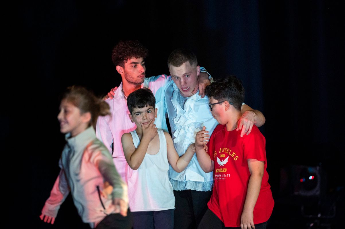 Together with a team of professional artists — including dancers, musicians, freerunners, skateboarders, acrobats, and street footballers — the children embark on a journey of discovery. Through play, they explore various forms of performing arts, contribute ideas, make creative choices, and help shape the final work.