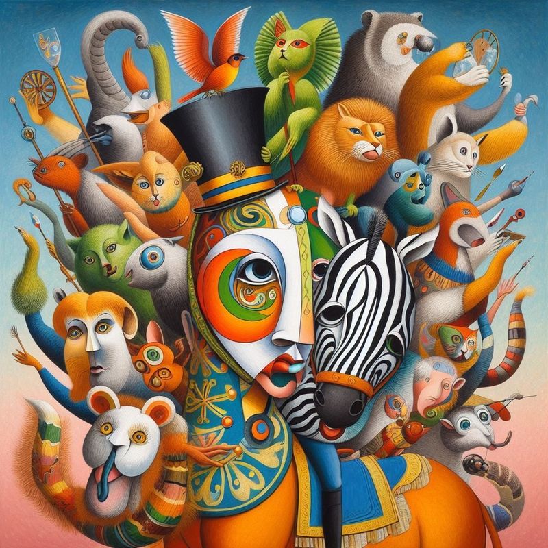 Dieren en componisten worden op treffende wijze uitgebeeld. We horen sloffende schildpadden, dansende olifanten, een koninklijke leeuw, een acquarium, een volière en een stervende zwaan.